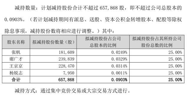2025年2月3日,中文在线发布关于董事、高级管理人员股份减持计划预披露的公告。公告显示,董事张帆、董事兼常务副总经理谢广才、副总经理兼董秘及财务总监王京京、首席运营官杨锐志合计减持65.79万股,减持比例为各自所持公司股份总数的25%,减持原因为个人资金需求。